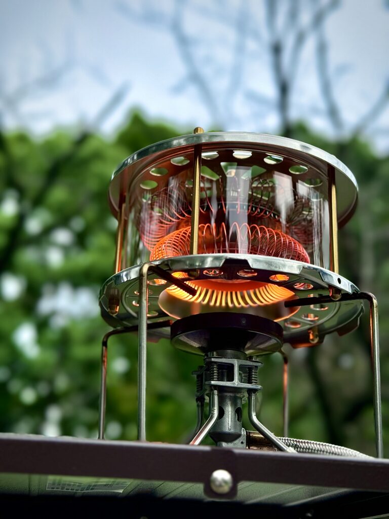 ヒーターアタッチメントバーナーの上に装着しヒーターとして扱えるアタッチメントです。キャンプで朝晩冷え込む時に最適な暖房器具です。